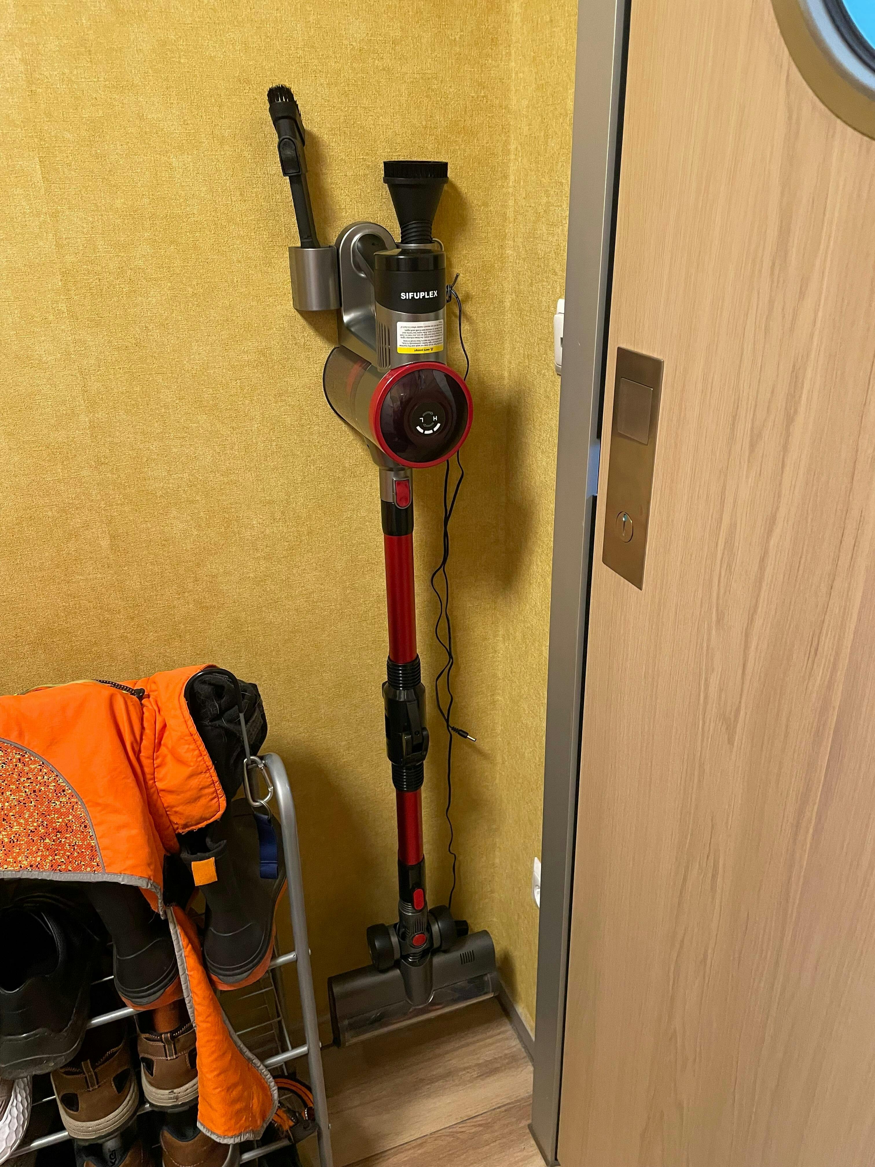 Außerdem würde ich den Sauger nicht mit vollem Gewicht hängend an der Wandhalterung montieren, sondern stehend. Das sorgt bestimmt für eine längere Lebensdauer der Kunststoff-Wandhalterung und sieht optisch auch viel aufgeräumter aus ;-)