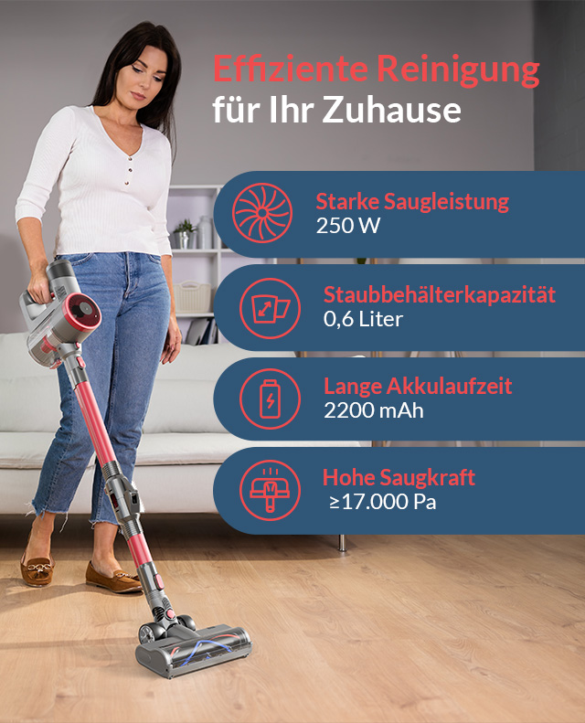 ⥠Volle Leistung â 22.2V Spannung und 2.2Ah KapazitĂ€t fĂŒr konstante Saugleistung